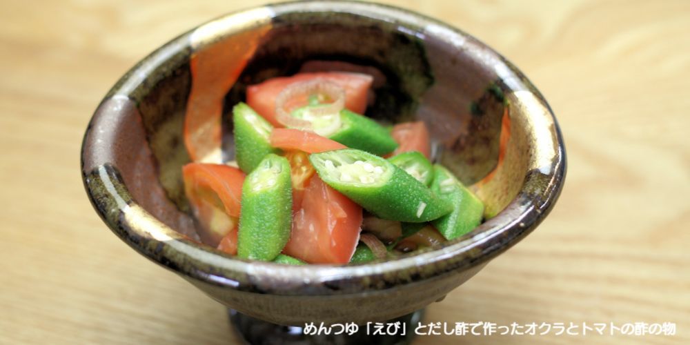 基本の分量は「えびつゆ1」に対して「だし酢2」ですが、その日の気候や体調で味をみて調整するのが、より美味しく楽しむコツです。