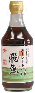 原材料名:しょうゆ(本醸造)(大豆(遺伝子組換えでない)・小麦を含む)、みりん、砂糖、焼き飛魚(あご)、醸造酢、酵母エキス、こんぶ、魚貝エキス、乾しいたけ